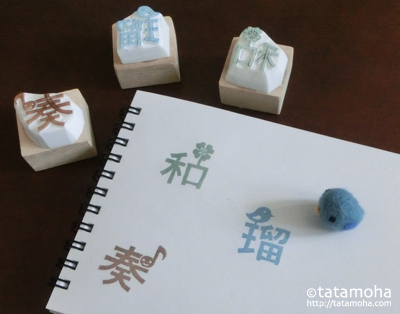 くまとうさぎと、つみきちゃんともくめちゃんのはんこ。