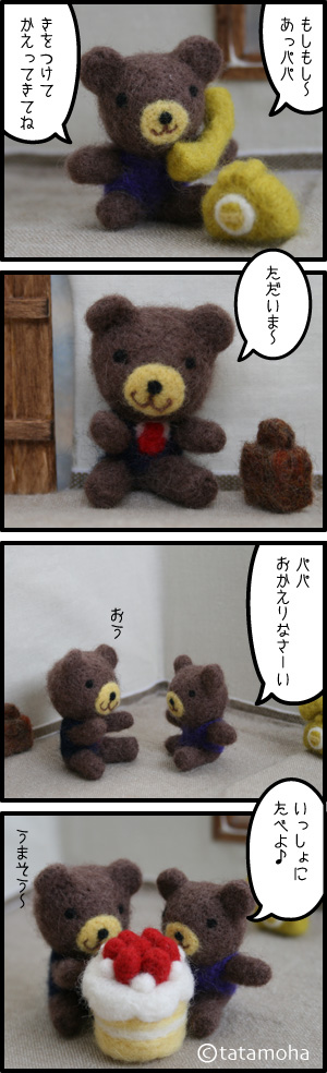 スーツ姿(赤いのはネクタイらしいです)のパパくまが