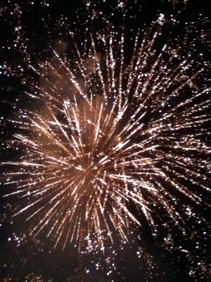 地元の神社のお祭り、公園のグラウンドで打ち上がった花火です。