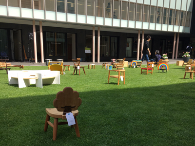 美術館の中庭では子どもの椅子展をやっていました