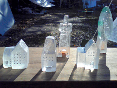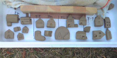 粘土でお家を作って、タナカユミさんがガラスのお家に