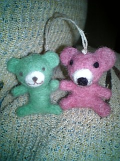 Yさんのくまさん。お手持ちの羊毛でもうひとつくってくれました。