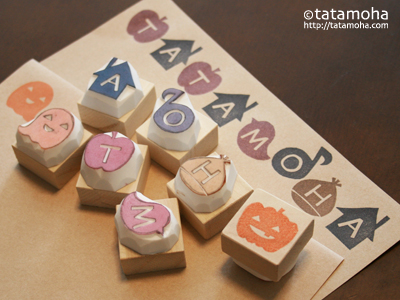三センチ角の木の持ち手をつけて完成、のはんこ教室です。