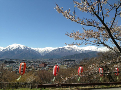 4月28日、久々にきれいに見えた北アルプスと散り際の桜です。